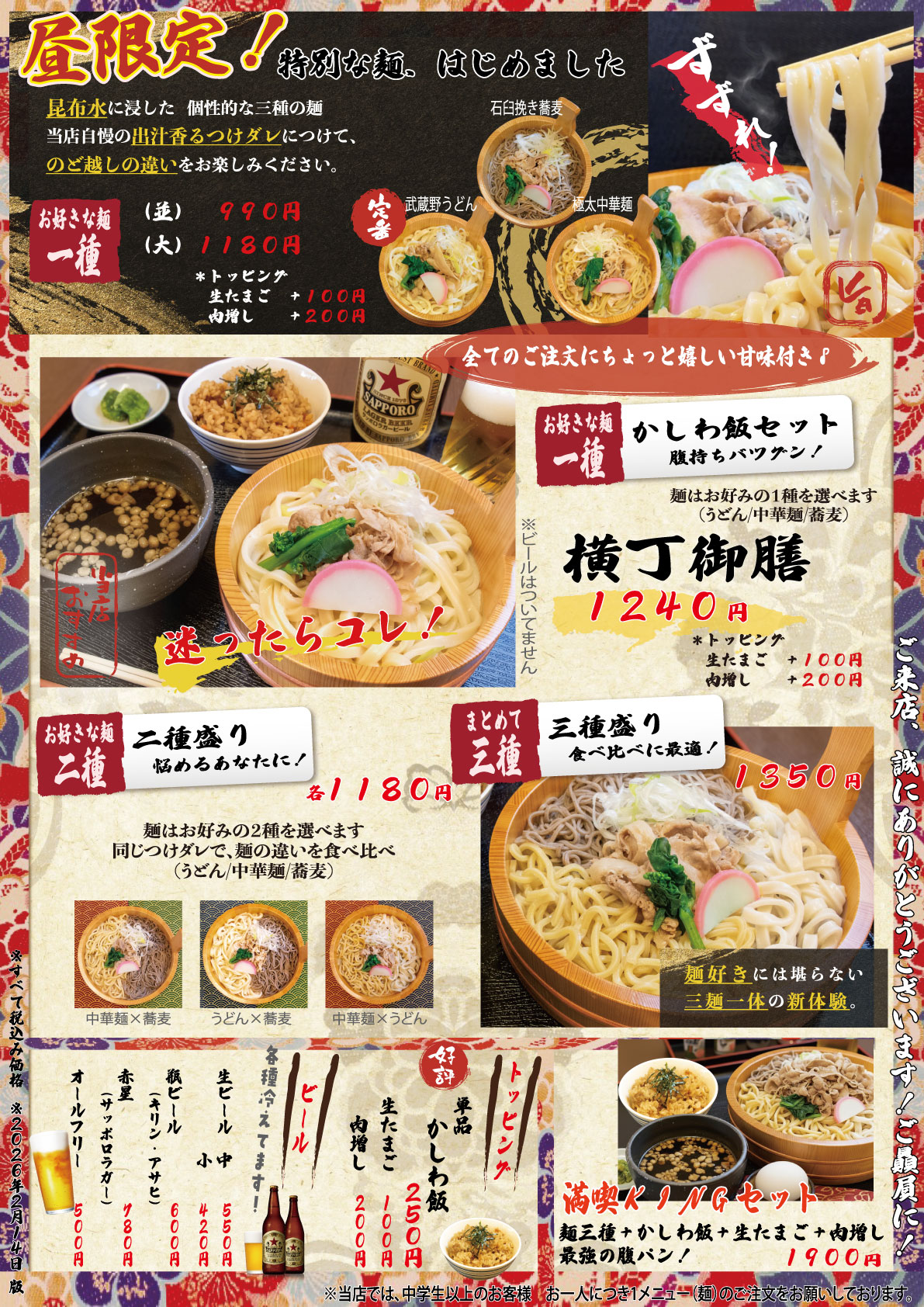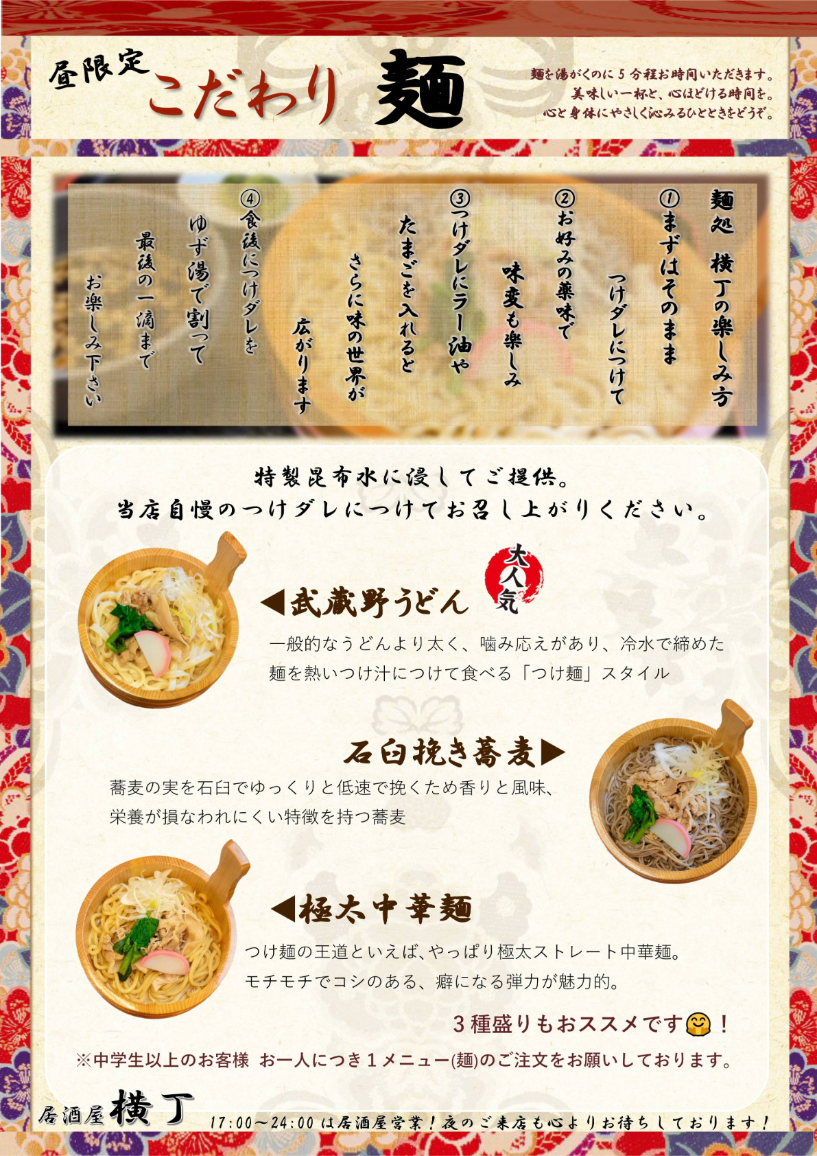 喉ごし自慢の 【麺処 横丁】(居酒屋 横丁)